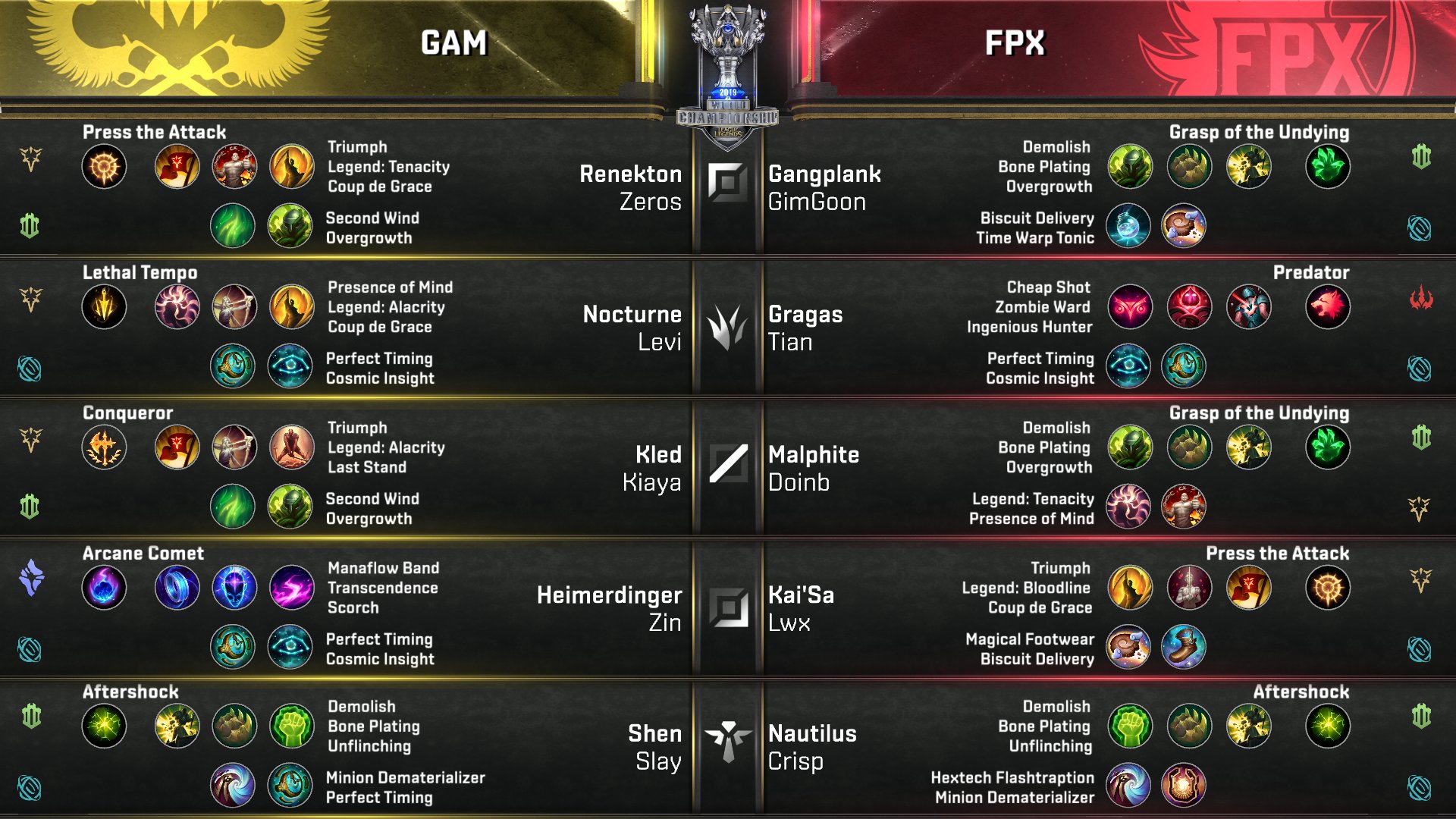 | GAM Esports vs. FunPlus Phoenix / 2019 World Championship - Group B / Post-Match Discussion Posted: 17 Oct 2019 06:40 AM PDT WORLDS 2019 GROUP STAGEOfficial page | Leaguepedia | Liquipedia | Live Discussion | Eventvods.com | New to LoL GAM Esports 0-1 FunPlus PhoenixGAM | Leaguepedia | Liquipedia MATCH 1: GAM vs. FPXWinner: FunPlus Phoenix in 28m
